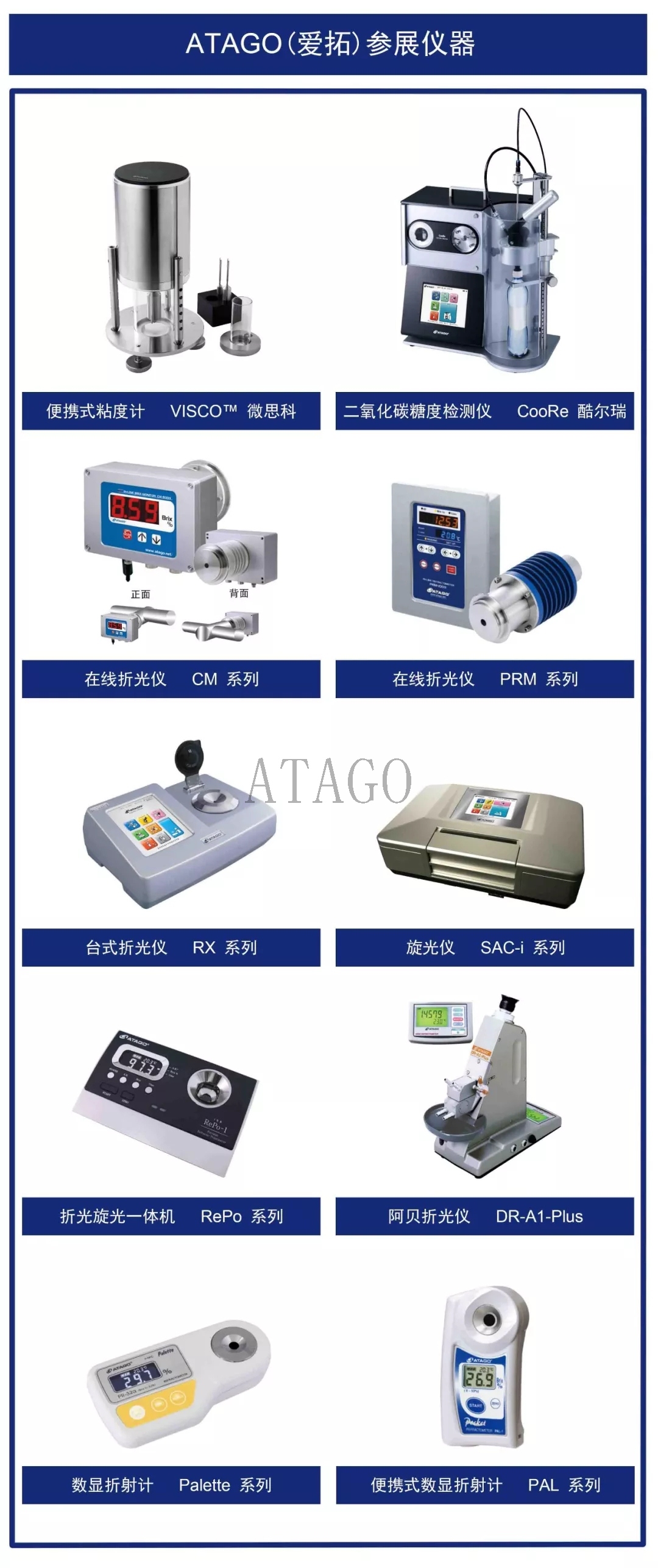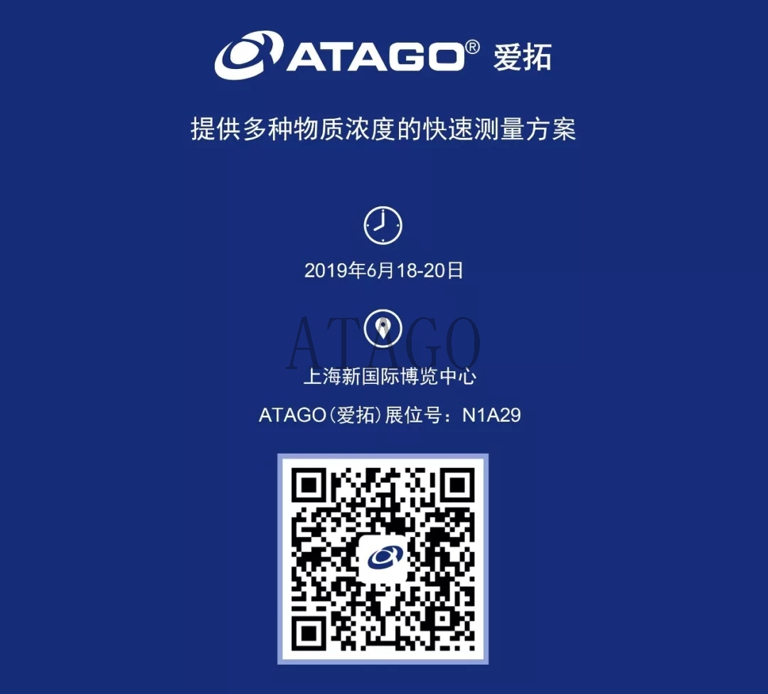ATAGO(爱拓)受邀出席本届展会,将会携带便携式粘度计、二氧化碳糖度检测仪、在线折光仪、全自动折光仪、阿贝折光仪、便携式折光仪等系列检测仪器为您展现多种物质浓度的快速测量方案!